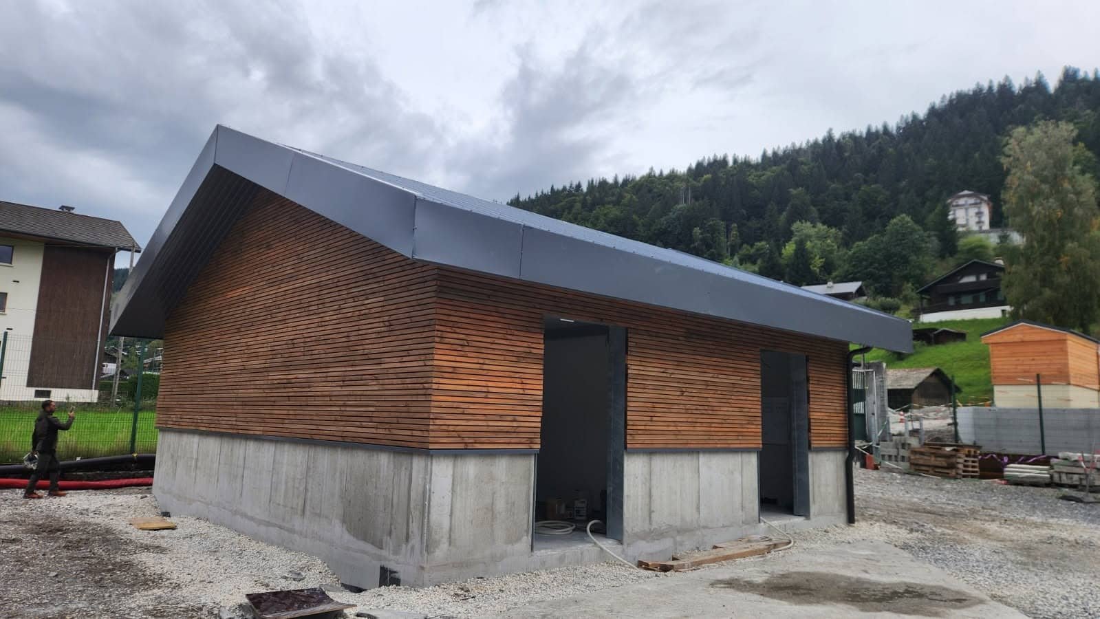 Nous sommes intervenus pour la réalisation de l’enveloppe de plusieurs bâtiments neufs sur un poste ENEDIS à Morzine, pour le compte d’Écoins. Ce type de site technique impose des contraintes spécifiques, notamment en matière de sécurité, de coordination et de respect des procédures d’intervention.