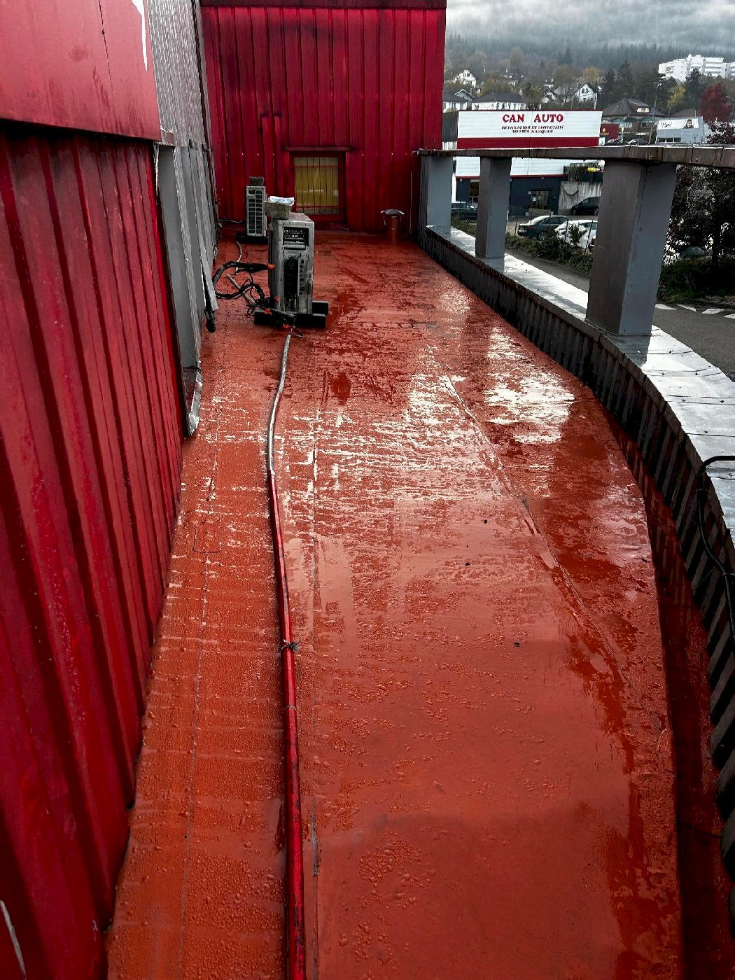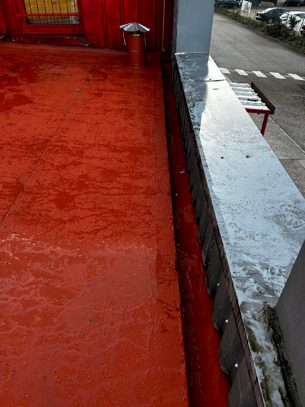 La rénovation a également inclus l’étanchéité du caniveau, réalisée en membrane PVC afin d’assurer une continuité parfaite du complexe et prévenir toute stagnation ou infiltration future.