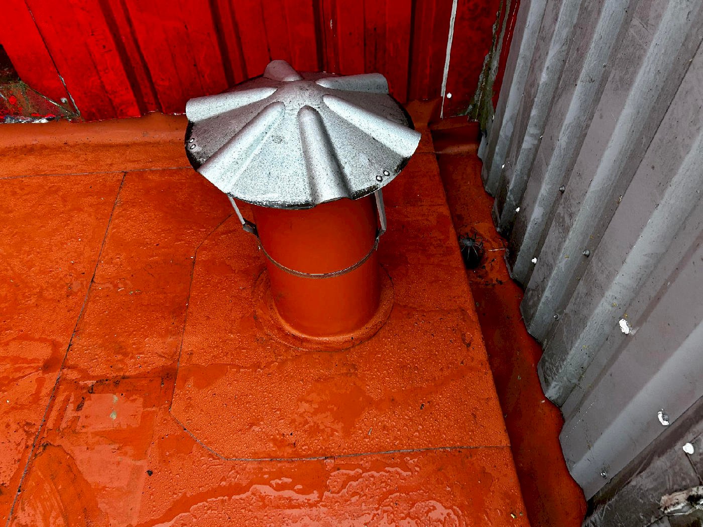 Un isolant en laine de roche de 60 mm d’épaisseur a été mis en œuvre, assurant à la fois isolation thermique et résistance au feu. L’ensemble de la toiture a ensuite été recouvert d’une membrane PVC rouge SIKA en 15/10ᵉ, soigneusement soudée pour garantir une étanchéité optimale.